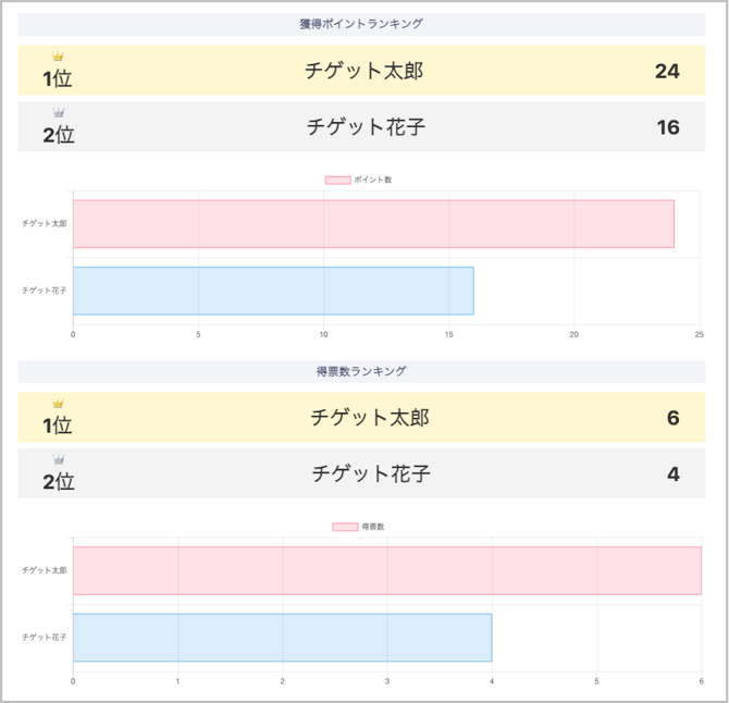 獲得ポイントや得票数がランキング形式で表示されます。
